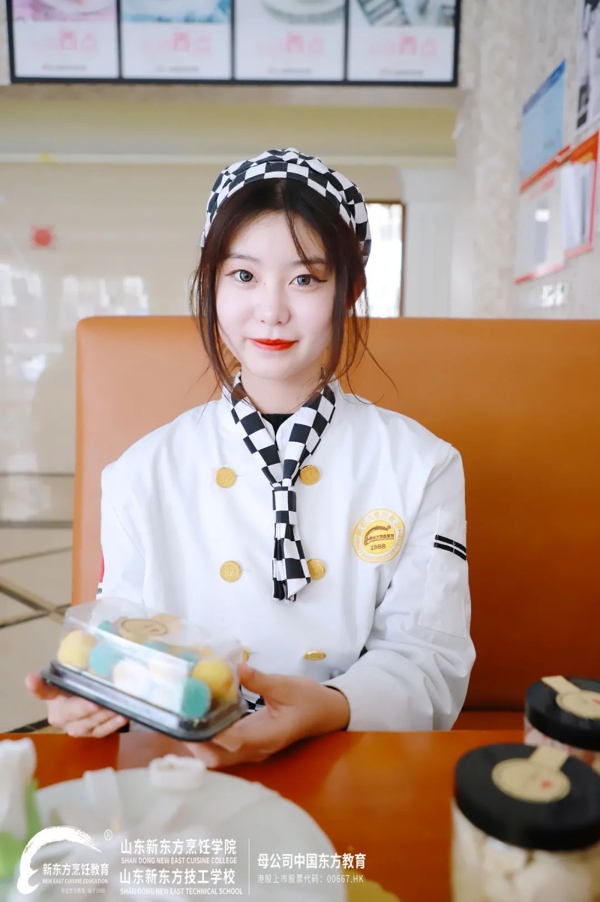 在与家人沟通后,黄梦雪同学同样没有草率的决定自己人生的方向,在慎重考虑后她最终选择学习一门西点技术。她明白,唯有拥有一技之长才是终生的财富。就这样她选择转学山东新东方经典西点专业。