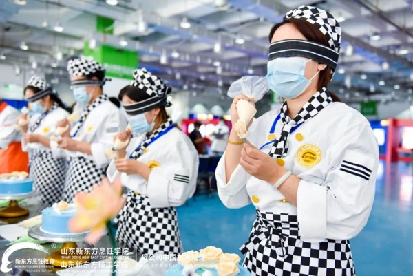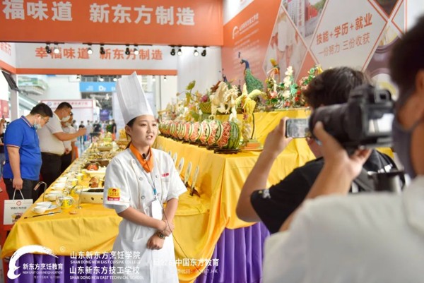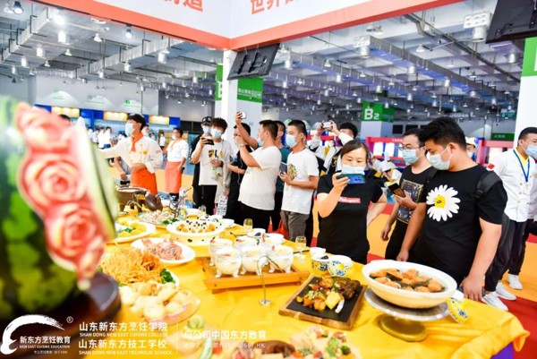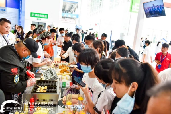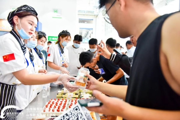其中,精彩的职教成果技能表演区,现场将有气球切肉丝、蓑衣花刀表演、银针丝表演、拉面表演、蒙眼刀工表演,更有新东方学子蒙眼裱花表演将现场氛围推向高潮,山东新东方职教成果展台人头攒动,引爆全场。与其说是一场职教成果展,不如说是一次直击眼球的视觉与味觉的美食艺术盛宴!