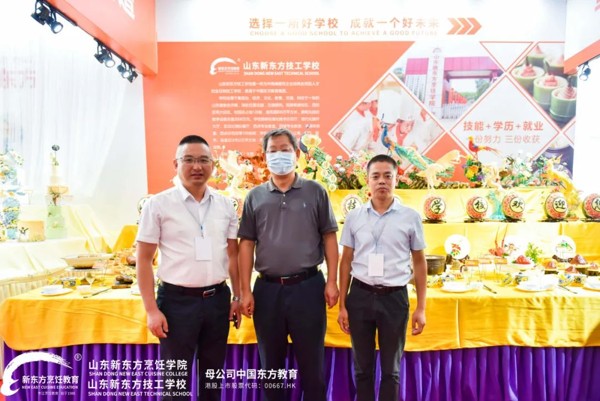 咨询会期间,山东省人力资源和社会保障厅副厅长侯复东、山东省人力资源和社会保障厅职业能力建设处处长张龙莅临参观了我校职业教育成果展台,与我校校长鲍余能亲切交谈,并赞扬山东新东方职教成果出彩,领导一行亲切询问山东新东方近年来的发展状况,对于山东新东方取得的喜人成绩和良好的社会口碑表示祝贺,对促进烹饪行业发展所做出的贡献表示赞扬,对教育教学的不断创新给予了高度肯定。