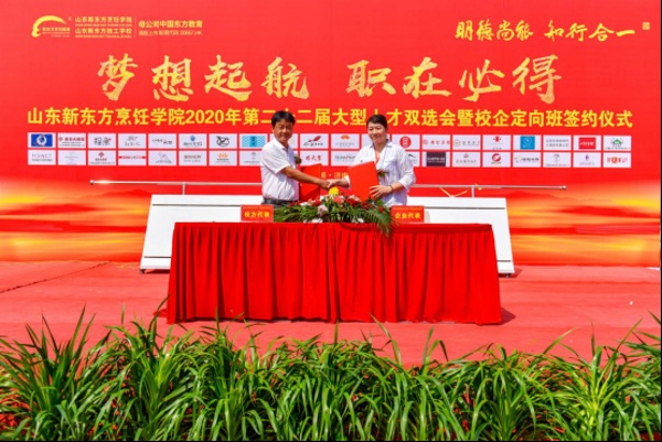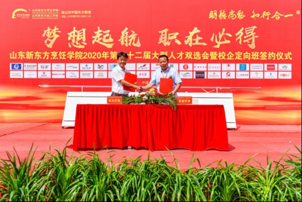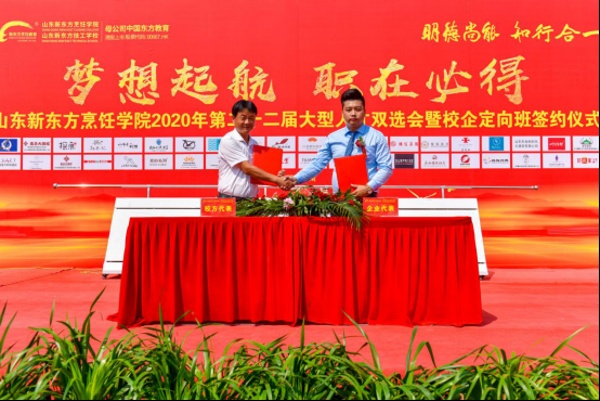 为积极响应国家大力发展职业教育的号召,进一步深化校企合作,充分发挥学校与企业双方优势,发挥职业技能教育为社会和企业培养高素质、高技能型应用人才的作用,为学生实习、实训、就业提供更多空间,在学校和合作企业的共同努力下,山东新东方烹饪学院2020年第二十二届大型人才双选会暨校企定向班签约仪式于2020年8月28日上午隆重举行。
