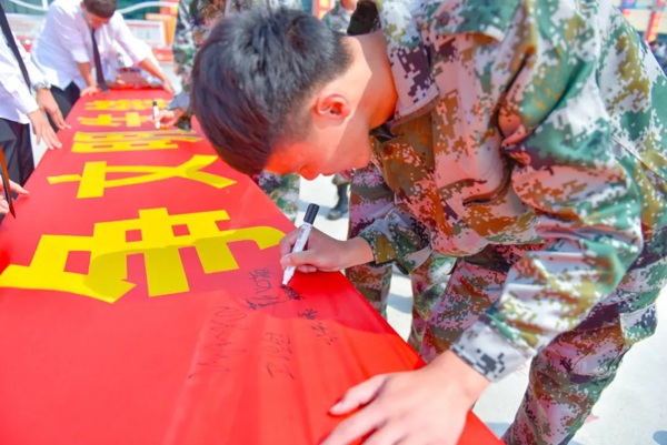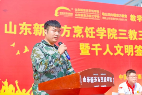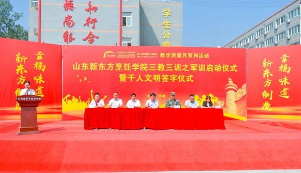 为了增强同学们的团结凝聚力,激发同学们爱国、爱校热情,培养吃苦耐劳和坚韧不拔的意志,努力提高同学们思想素质、身体素质、自我管理能力,培养优秀的烹饪精英,9月7日上午,山东新东方烹饪学院三教三训之军训启动仪式暨千人文明签字仪式在西校区顺利进行!