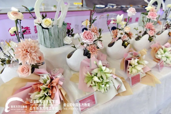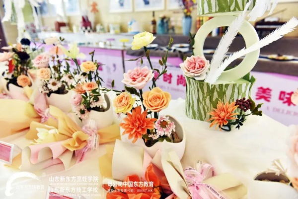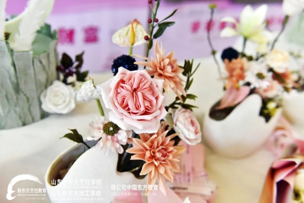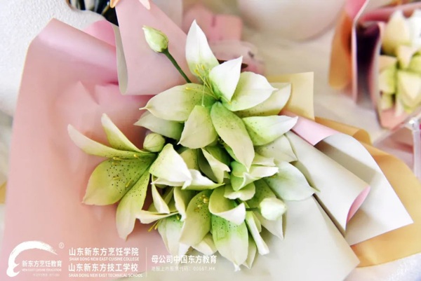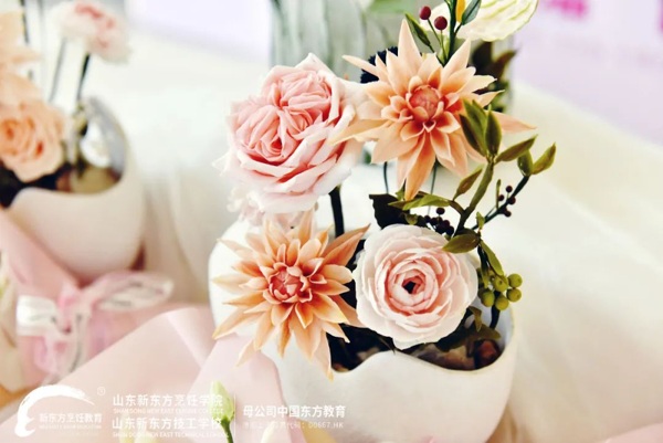 短短一个多月的翻糖花学习,山东新东方烹饪学院翻糖特色选修晚班同学们的结业作品可谓是美轮美奂,造型也是饱满逼真,这份结业作品答卷也给了全校师生一场视觉盛宴。