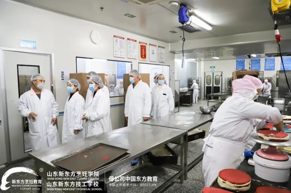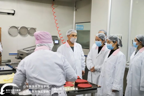 为提升教育教学品质,丰富专业课程教学,更好的为社会和企业培养高素质、高技能的烹饪应用型人才。近日,在山东新东方烹饪学院创就业指导中心领导的安排下,学院部分老师、同学一行前往校企合作企业——济南沃德爱礼食品有限公司进行参观学习,慰问在这里就职的毕业学子,并借由这次回访的机会,全方位为在校学子考察他们未来就业的真实工作环境。
