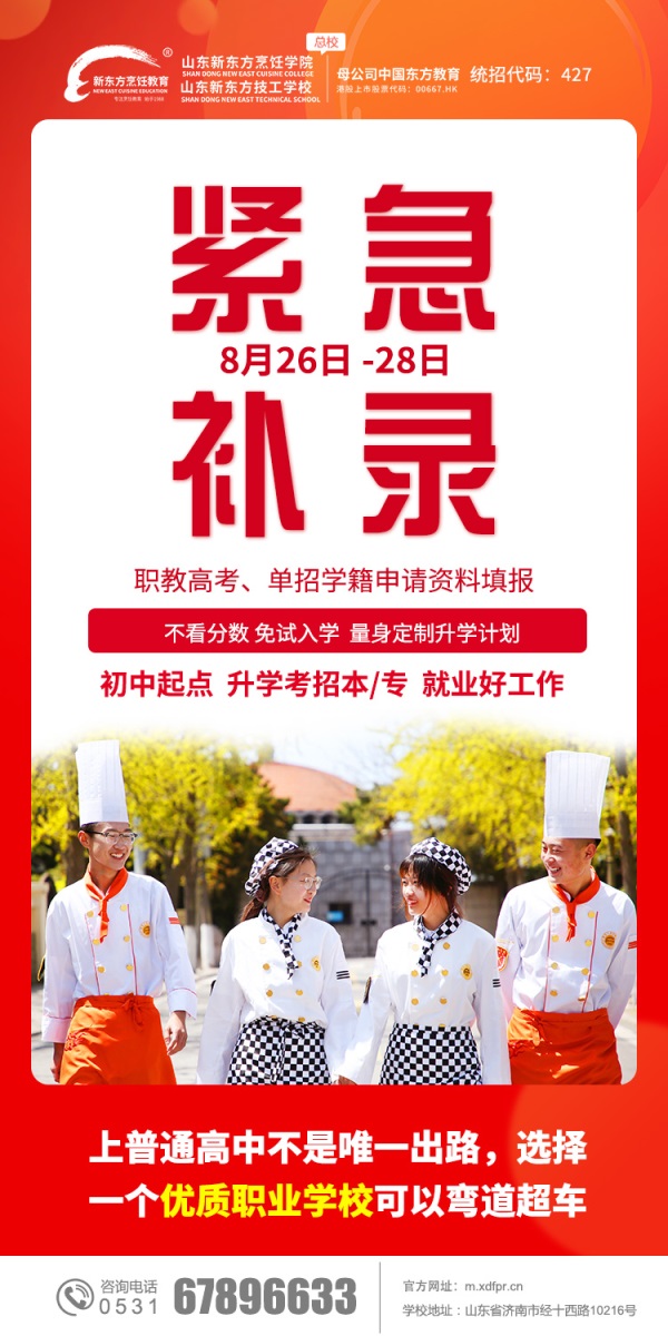 职业教育=就业教育,一所职业院校究竟值不值得信任,关键要看学生的就业情况。山东新东方烹饪学院采用产教融合,与国内大批企业达成合作伙伴关系,学校定期开展校园招聘会、人才双选会、校企共育班、企业观摩行等活动,让学子在校期间就能够充分了解到职场的发展动态,并学到企业特有技能,故而,将来学子走入职场后发展会更加顺利、出色!