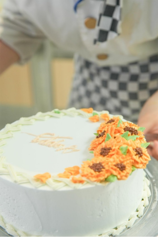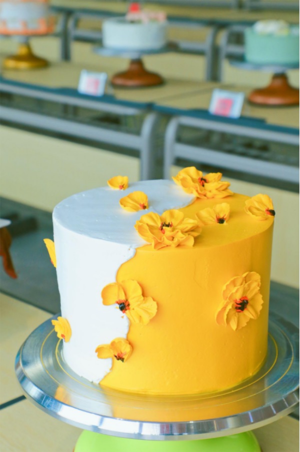 上午九点,比赛在多媒体中心正式开始,蛋糕在转盘上不停地旋转,同学们手里握着抹刀随着转盘的转动划出优美的弧线,奶油在同学们的巧手下裱出了一朵朵漂亮的造型,每一款蛋糕都有不同的色彩和造型,这也展现了同学们无限的想象力,令人目不暇接,这就是山东新东方烹饪学校西点专业裱花技能大赛现场。