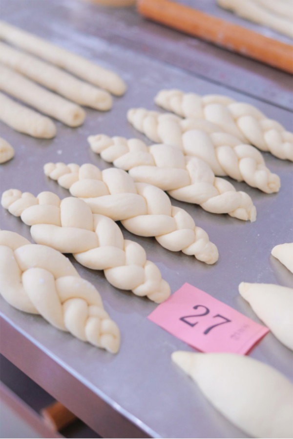 分割是根据配方需要将大面团分割成小分量的面团,通常一个小面包标准大小是60克,也可以分割成50克或40克一个。分割后的面团不能立即成型,必须要滚圆,也叫搓圆,通过滚圆使面团外表形成一层光滑表皮,利于保留新的气体而使面团再次膨胀。